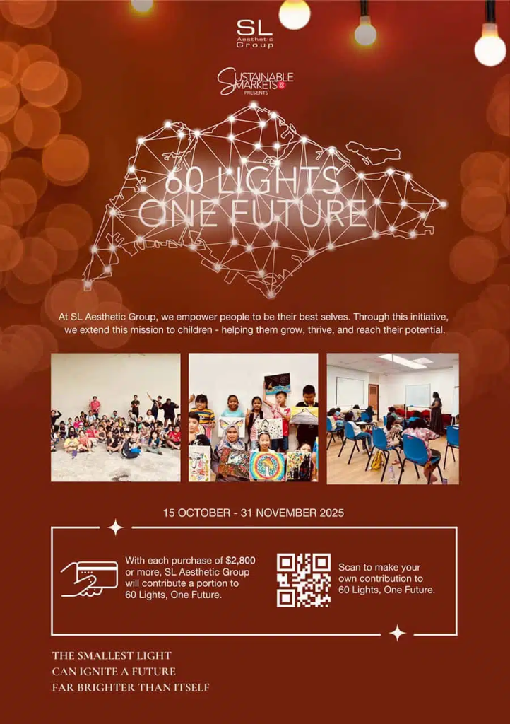 At SL Aesthetic Group, we believe that true success comes from growing people within our organisation and beyond it. This Christmas, we are proud to take part in 60 Lights, One Future, a meaningful initiative that brings hope and opportunity to underprivileged children living in public rental flats.